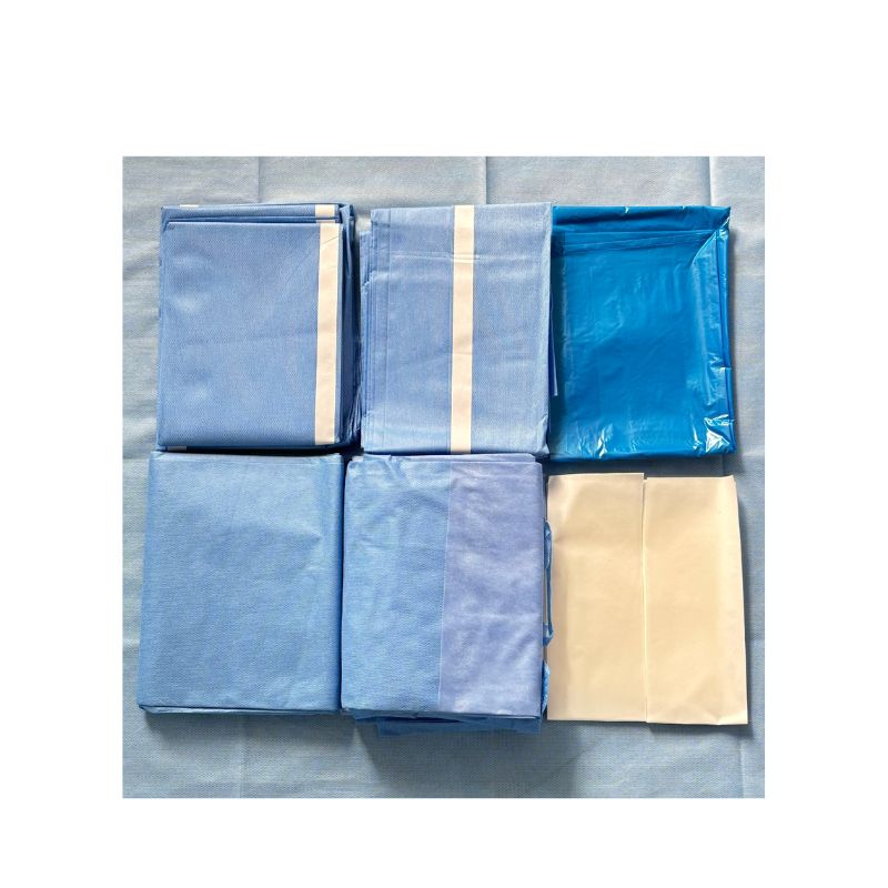 1. ڈریپ شیٹ، 175*160cm، 40g SMS فیبرک، 2cm175cm ڈبل رخا ٹیپ منسلک، 1 ٹکڑا 2. ڈریپ شیٹ: 240150cm، 40g SMS فیبرک، 2cm240cm ڈبل رخا ٹیپ منسلک، 1 ٹکڑا 3. ڈریپ شیٹ: 9075cm، 40g SMS فیبرک، 2cm90cm ڈبل رخا ٹیپ کے ساتھ، 2 ٹکڑے 4. مییا ٹیپ: 145*78cm، 1 ٹکڑا 5. میڈیکل ٹیپ: 10*50cm، 2 ٹکڑے 6. سرجیکل گاؤن: 130*150cm، 40g SMS فیبرک، 2 ٹکڑے 7. طبی تولیہ: 40*40 سینٹی میٹر، 70 گرام پرل کاٹن، 2 ٹکڑے 8. کپڑا لپیٹنا: 100*100cm، 35g SMS فیبرک، 1 ٹکڑا |